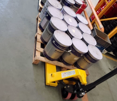 手動(dòng)液壓搬運(yùn)車參與罐頭廠倉庫搬...