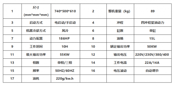 二、山東恒通動力系列柴油發(fā)電機組主要技術(shù)參數(shù):