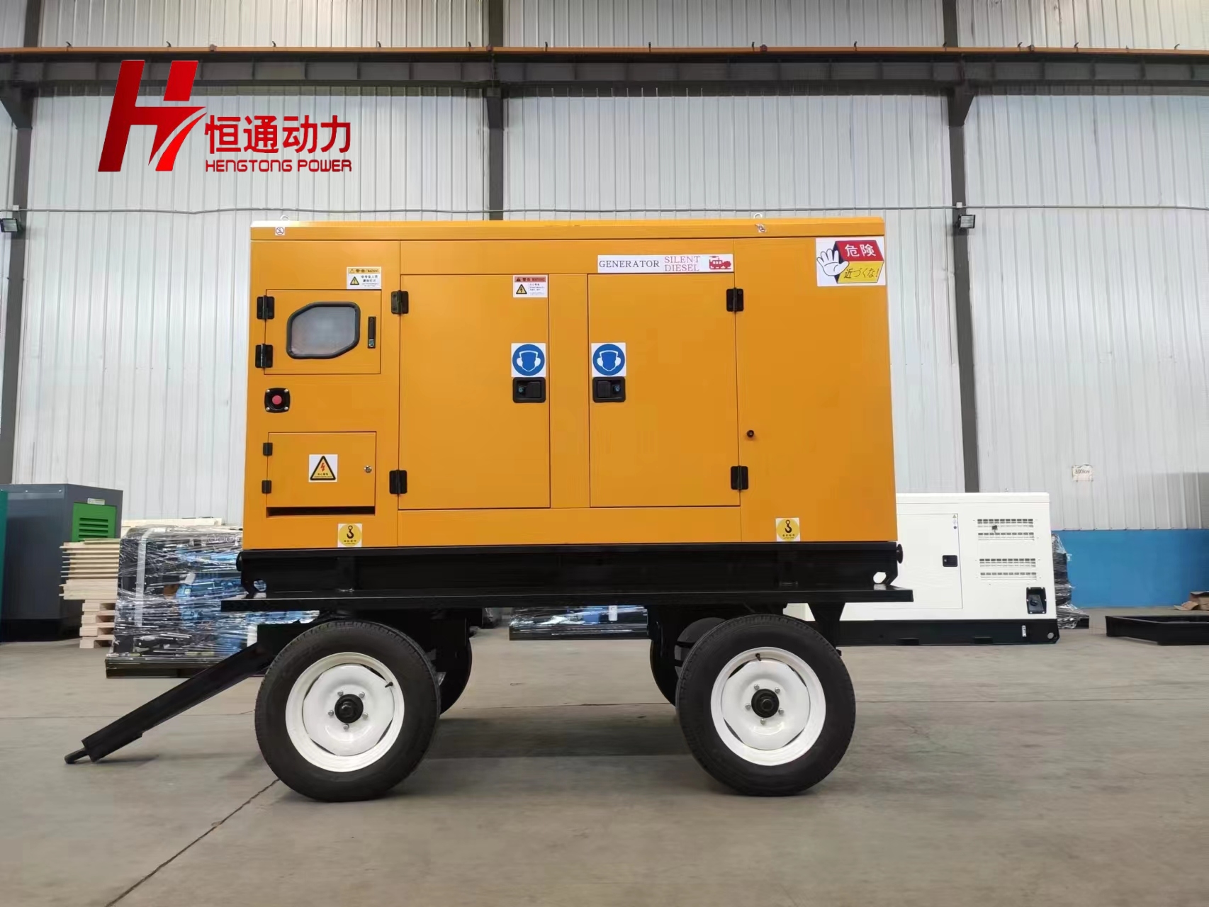 拖車采用高度可調(diào)節(jié)插銷式牽引架,適用于各種高度牽引車;采用圓形鋼管焊接直通式車軸,結(jié)構(gòu)緊湊,安全可靠。車架四角設(shè)有機(jī)械式支撐裝置,配備慣性行車制動、駐車制動和脫離應(yīng)急制動,確保機(jī)組在各種狀況下的安全。車架前端設(shè)有支撐輪,具備承受機(jī)組垂直載荷的功能的同時還具備導(dǎo)向功能。整車配備轉(zhuǎn)向和剎車指示燈,同時裝有尾燈標(biāo)準(zhǔn)插頭。